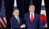 문재인 대통령과 도널드 트럼프 미국 대통령은 23일(현지시간) 한·미 정상회담에서 “한·미 양국이 북한과의 관계를 전환해 70년 가까이 지속된 적대관계를 종식하고 한반도의 항구적인 평화 체제를 구축할 의지를 재확인했다”고 청와대가 밝혔다. 두 정상은 이날 오후 5시30분부터 1시간5분 동안 문 대통령이 머무는 숙소인 미국 뉴욕의 인터콘티넨털 바클레이 호텔에서 정상회담을 열었다.