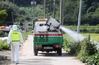 국내에서 처음으로 가축전염병인 아프리카돼지열병(ASF)이 발생한 17일 오전 경기 파주시 연다산동의 한 돼지농장에서 방역 관계자들이 인근 방역작업을 진행하고 있다. 뉴시스 |