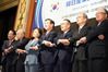 24일 오후 서울 중구 소공동 롯데호텔에서 열린 제51회 한일경제인회의에서 주요 참석자들이 손을 맞잡고 기념촬영을 하고 있다. 왼쪽부터 유명환 전 외교통상부 장관, 손경식 한국경영장총협회 회장, 유명희 통상교섭본부장, 김윤 한일경제협회 회장(삼양홀딩스 회장), 사사키 미키오(佐佐木幹夫) 일한경제협회 회장(미쓰비시상사 특별고문), 나가미네 야스마사 주한 일본대사, 고가 노부유키 노무라 증권 회장. [연합] |