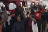 아프리카 난민들이 23일(현지시간) 이탈리아가 시칠리아섬 메시나항 입항을 허가했다는 소식에 지중해의 배 위에서 프랑스 국제구호단체인 ‘SOS메디테라네’의 활동가를 들어올리며 기뻐하고 있다. AP연합뉴스 |
