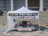 지난 15일 국회 본청 계단 앞에서 천막 농성장을 설치하고 단식을 시작한 이 의원은 작은 테이블과 노트북을 놓은 채 생활하고 있다.