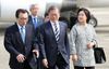 문재인 대통령과 김정숙 여사가 26일 오후 서울공항에 도착한 공군1호기에서 내려 이동하며 더불어민주당 이해찬 대표와 대화를 나누고 있다. (사진=연합뉴스) |