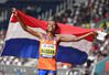 에티오피아 난민 출신 시판 하산(네덜란드)가 29일(한국시간) 카타르 도하에서 열린 2019 세계육상선수권 여자 1만m 결승에서 1위로 통과한 뒤 국기를 들고 트랙을 돌며 기쁨을 만끽하고 있다. (사진=AFPBBnews) |