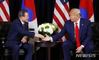 문재인 대통령이 23일(현지시간) 뉴욕 인터콘티넨탈 뉴욕 바클레이 호텔에서 열린 한미 정상회담에서 도널드 트럼프 미국 대통령과 악수하고 있다. 2019.09.24.【뉴욕=뉴시스】전신 기자 = photo1006@newsis.com |
