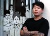![만화가 김용키가 `타인은 지옥이다` 그림을 배경으로 포즈를 취하고 있다. 이 작품은 주인공 종우(그림 제일 앞)가 지옥 같은 고시원에서 생존해 나가는 내용을 담았다. [한주형 기자]](http://static.news.zumst.com/images/18/2019/09/29/d02cc149e5dd44cc85891dabab50aefc.jpg)