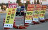 방역 당국이 29일 오후 충남 예산군 한 도로에 방역 안내 표지판을 설치하고 아프리카돼지열병(ASF) 확산 방지에 총력을 기울이고 있다. 이날 농림축산식품부는 홍성군 한 도축장에서 아프리카돼지열병(ASF) 의심 신고가 접수됐다고 밝혔다.