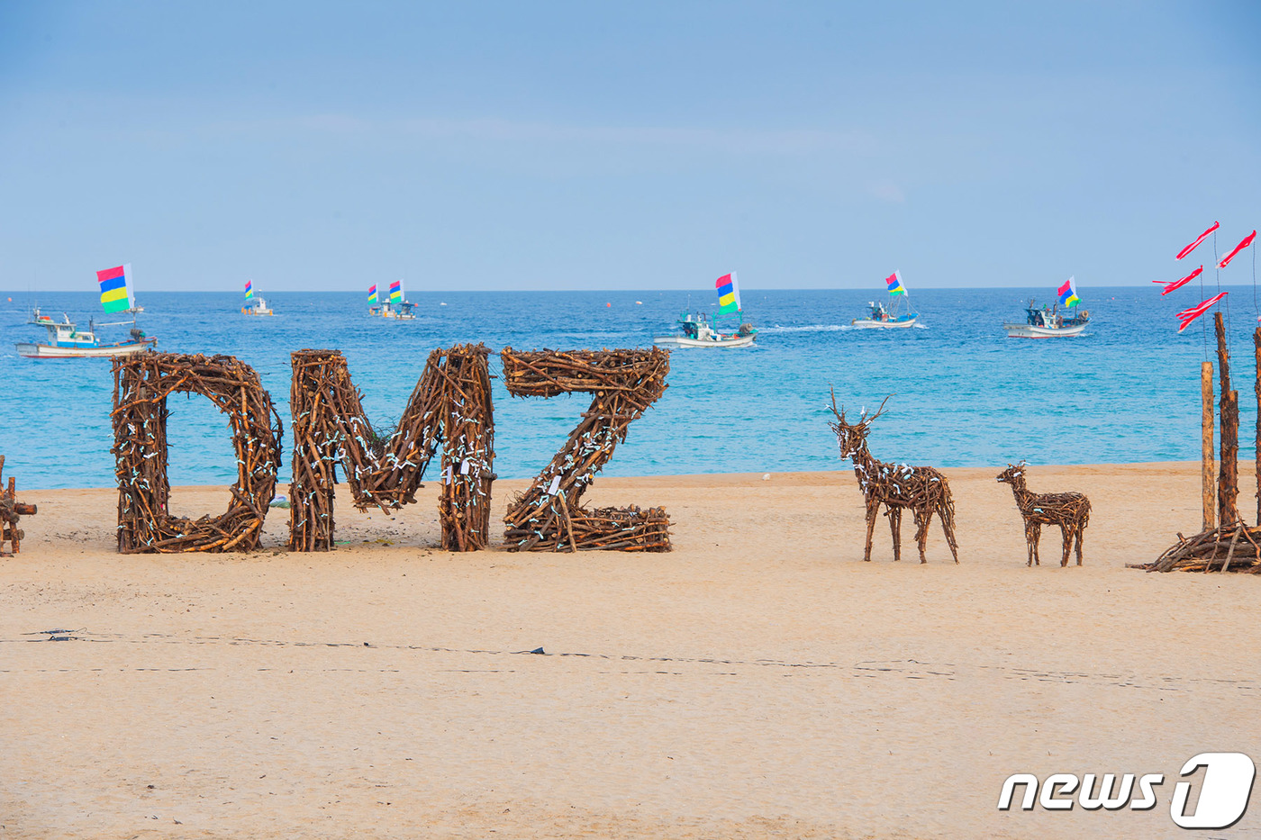 (고성=뉴스1) 고재교 기자 = 지난 28일 강원도 고성 화진포해수욕장에서 2019 디엠지 아트페스타 조형물이 설치돼 있다. (고성군 제공) 2019.9.29/뉴스1high15@news1.kr[© 뉴스1코리아(news1.kr), 무단 전재 및 재배포 금지]