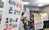독일 국채금리 연계형 파생결합증권(DLS)에 투자했다가 거액을 날린 투자자들이 19일 오전 경기 성남시 수정구 우리은행 위례신도시지점에 몰려들어 항의 시위를 벌이고 있다. 이들은 "독일이 망하지 않는 한 절대 안전하다더니, 1억원이 6개월 새 3000만~4000만원이 됐다"며 원금을 돌려달라고 호소했다. /김은정 기자 |
