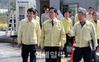 양승조 충남지사(사진 가운데)가 30일 천안시 병천면 탑원리 아프리카돼지열병(ASF) 거점소독시설을 방문해 현장을 점검하고 있다. (사진=충남도 제공) |