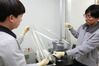 SKC 연구원이 투명PI 필름을 살펴보고 있다.(사진제공=SKC) |
