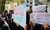 원금손실 논란이 일고 있는 해외금리 연계 파생결합상품(DLF·DLS) 피해자들이 1일 서울 여의도 금융감독원 앞에서 우리은행과 KEB하나은행의 파생결합상품 판매를 규탄하는 기자회견을 갖고 있다. 뉴시스 |