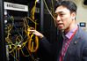 SK텔레콤 분당사옥 5G 인빌딩 테스트베드에서 SK텔레콤 연구원이 레이어 스플리터(삼성향) 장비를 소개하고 있다. |
