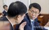 은성수 금융위원장이 4일 국회에서 열린 정무위원회의 금융위원회에 대한 국정감사에 출석, 손병두 부위원장과 이야기를 나누고 있다./윤동주 기자 doso7@ |