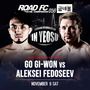 ROAD FC 김대환 대표는 “고기원과 알렉세이 페도셰프는 킥복싱 무대에서 큰 활약을 펼친 선수들이다. 고기원은 이미 ROAD FC에서 타격 능력 입증했고, 알렉세이 페도셰프는 데뷔전이지만, 킥복싱에서 챔피언이기에 기대가 되는 선수다. 두 파이터가 케이지 위에서 보일 타격전에 주목하면 더욱 재밌게 경기를 즐길 수 있을 것”이라고 말했다.