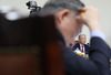 여상규 국회 법제사법위원장이 7일 오후 서울 서초동 서울고등검찰청에서 열린 국회 법제사법위원회의 서울고검, 서울중앙지검 등에 대한 국정감사에서 패스트트랙 수사와 관련해 송삼현 남부지검장에게 질의하고 있다. 더불어민주당 표창원 의원이 머리에 손을 댄 채 심각한 표정으로 질의를 듣고 있다. 연합뉴스 |
