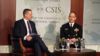 존 힐(오른쪽) 미 국방부 소속 미사일방어청장이 워싱턴DC에서 전략국제문제연구소(CSIS)가 개최한 미사일방어 관련 토론회에서 발언하고 있다. 왼쪽은 톰 카라코 CSIS 미사일방어프로젝트 국장./RFA |