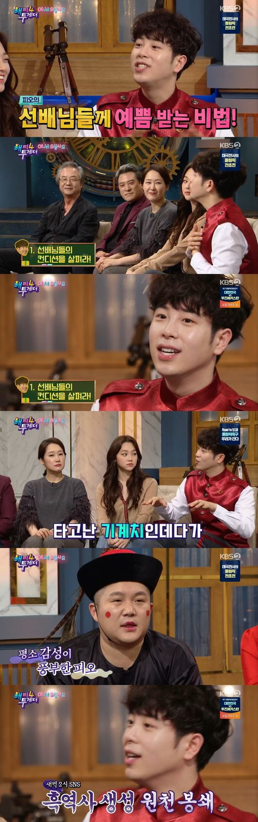 예능 치트기 피오는 선배들에게 예쁨을 받는다고 했다. 피오의 매력에 대해 배해선은 "피오가 있는 촬영현장 완전 달라, 촬영장 분위기메이커다"며 인정, 피오는 선배들에게 예쁨 받는 비법에 대해 "눈치 많이 보는 편, 선배들 컨디션을 보다가 일상적인 대화를 자주한다"고 했다.