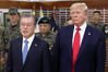 문재인 대통령과 트럼프 미국 대통령이 지난 6월 30일 DMZ(비무장지대) 내 미군 부대 캠프보니파스를 방문하고 있다. 연합뉴스 |