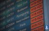 중국 베이징 서우두 공항의 축구대표팀 평양행 항공편 안내. |