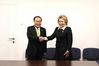 제141차 IPU(국제의회연맹) 총회 참석차 세르비아 베오그라드를 방문한 문희상 국회의장이 14일(현지시간) 발렌티나 마트비옌코 러시아 상원의장과 만나 악수를 나누고 있다. /사진제공=국회 |