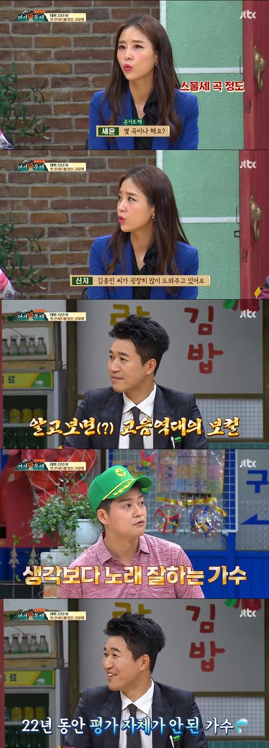 전현무는 "들어보면 김종민이 고음이 엄청나다. 저평가 된 가수 중 한 명이다"라고 말했다. 이날 김종민은 즉석에서 코요태의 노래를 라이브로 불러 눈길을 사로 잡았다.