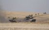 시리아 북부 도시 만비즈 주변에 15일 터키군 탱크가 늘어서 있다. 터키군과 시리아 정부군이 대치하고 러시아군까지 개입하면서 만비즈는 내전의 ‘새로운 전선’이 되고 있다. 만비즈|AP연합뉴스 |