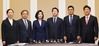 원내 3당 교섭단체 원내대표와 소속 정당 협상대표 의원들이 16일 국회 본청 의원식당에서 만나 기념촬영을 하고 있다. 이들은 패스트트랙으로 지정된 검찰개혁방안 등을 담은 사법개혁 및 정치개혁 법안 중 고위공직자비리수사처 관련법안 2건과 형사소송법 개정안 등 사법개혁 법안을 우선 논의했다. 왼쪽부터 권은희 바른미래당 의원, 송기헌 더불어민주당 의원, 나경원 자유한국당 원내대표, 이인영 더불어민주당 원내대표, 오신환 바른미래당 원내대표, 권성동 자유한국당 의원. 사진=서동일 기자 |