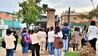 강화 원도심 스토리 워크 버스투어에 나선 관광객들이 문화해설사의 설명을 듣고 있다. /강화군 제공 |