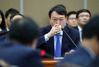 윤석열 검찰총장이 17일 서울 서초구 대검찰청에서 열린 국회 법제사법위원회의 대검찰청 국정감사에서 목을 축이고 있다. 뉴시스 |