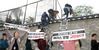 18일 오후 3시경 한국대학생진보연합 소속 대학생들이 서울 중구의 미국대사관저에서 미국 측의 주한미군 방위비 분담금 인상을 규탄하는 기습 시위를 벌인 뒤 관저 담장을 넘고 있다. 경찰은 관저 안으로 들어간 16명과 담장 밖에 서 있던 3명 등 19명을 현행범으로 체포했다. 뉴시스