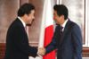 2018년 9월 11일 이낙연(왼쪽) 국무총리가 러시아 블라디보스토크에서 열린 제4차 동방경제포럼 참석 중 열린 한·일 양자회담에서 아베 신조(安倍晋三) 일본 총리와 만나 악수를 하고 있다./연합뉴스 |