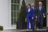 【워싱턴=AP/뉴시스】낸시 펠로시(왼쪽) 미 하원의장이 척 슈머 상원 민주당 원내대표와 16일(현지시간) 백악관에서 도널드 트럼프 대통령과의 회동을 마치고 백악관을 나서고 있다. 펠로시 의장은 "우리는 트럼프가 무너지는 모습을 봤다"면서 트럼프가 시리아 내 미군 철수를 비난하는 결의안이 통과된 후 매우 흔들리는 모습을 보였다고 전하며 대통령과의 대화 중 탄핵과 관련된 문제는 언급하지 않았다고 밝혔다. 슈머 원내대표는 "(트럼프와의 만남은) 대화가 아니라 사실에 근거하지 않은 일종의 비판 공격이었다"라고 말하며 트럼프 대통령이 펠로시 의장에게 '삼류정치인'이라고 말하는 순간 자리에서 일어나 나왔다고 상황을 전했다. 2019.10.17. |