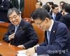 은성수 금융위원장(오른쪽)과 윤석헌 금감원장이 21일 국회에서 열린 정무위원회에 금융위원회 등에 대한 종합국정감사에 출석, 이야기를 나누고 있다./윤동주 기자 doso7@ |
