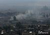 【세이란피나르=AP/뉴시스】시리아 라스 알아인 지역에서 18일 총성과 함께 연기가 솟아오르고 있다. 사진은 터키 남동부 세이란피나르 쪽에서 촬영됐다. 2019.10.18. |
