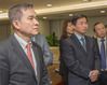 17일 중국 베이징 차이나텔레콤 본사를 방문한 하현회 LG유플러스 부회장(왼쪽)이 커루이원 차이나텔레콤 동사장(왼쪽에서 두 번째)과 함께 LG유플러스 5G 서비스를 살펴보고 있다. LG유플러스 제공 |