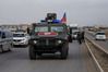 러시아 순찰병력이 24일 시리아 북부 카미실리 인근을 순찰하고 있다. 시리아군과 러시아군 고문과 군경찰은 시리아 동북부 지역에 설치된 30km(19마일)의 안전지대에 파견됐다./사진=카미실리 AP=연합뉴스 |
