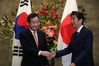 이낙연 국무총리가 지난 24일 오전 일본 도쿄 총리관저에서 아베 신조(安倍晋三) 총리와 만나 악수를 나누고 있다. 도쿄=뉴스1 |