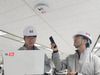 KT 네트워크부문 직원들이 대구 KT 효목사옥 내 5G 스몰셀(Small Cell) 솔루션 RDS(Radio Dot System)를 설치한 후 품질을 점검하고 있다. |