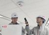 KT 네트워크부문 직원들이 대구 KT 효목사옥 내 5G 스몰셀(Small Cell) 솔루션 RDS(Radio Dot System)를 설치한 후 품질을 점검하고 있다. /KT 제공 |