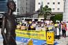 【부산=뉴시스】 하경민 기자 = 25일 부산 동구 일본총영사관 인근 강제징용노동자상 앞에서 부산지역 시민사회단체 회원들이 일본 후쿠시마 방사능 오염수 방류를 규탄하는 기자회견을 갖고 있다. 2019.09.25. yulnetphoto@newsis.com |