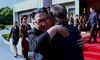지난해 5월27일 회담을 마치고 문재인 대통령과 김정은 위원장이 포옹하는 모습. 조선중앙TV 캡처 |