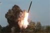 북한 조선중앙TV가 공개한 사진에서 초대형 방사포가 화염을 뿜으며 치솟고 있다. (사진=연합뉴스) |
