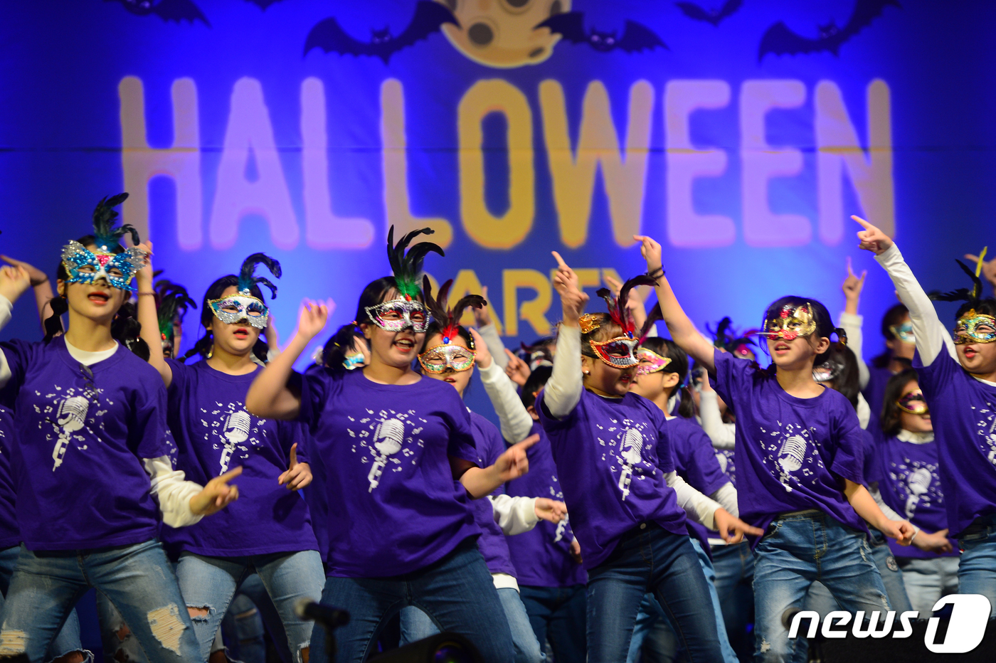 (광주=뉴스1) 박준배 기자 = 10월의 마지막 날인 31일 광주 광산구 광주여자대학교 잔디광장에서 열린 제20회 어등방송축전인 '할로윈파티'에서 기아챌린지 어린이 뮤지컬 공연단이 공연을 펼치고 있다. 2019.10.31/뉴스1nofatejb@news1.kr[© 뉴스1코리아(news1.kr), 무단 전재 및 재배포 금지]