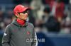 SK 염경엽 감독이 17일 고척스카이돔에서 열린 2019 KBO리그 키움과 SK의 플레이오프 3차전에서 키움에 1-10으로 패하며 3연패로 한국시리즈 진출이 좌절된 뒤 패장 인터뷰를 하고 덕아웃으로 들어가고 있다. 박진업기자 upandup@sportsseoul.com |