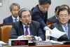 노영민 대통령 비서실장(왼쪽)이 1일 오후 열린 국회 운영위원회의 대통령비서실, 국가안보실, 대통령경호처 등의 국정감사에서 자유한국당 나경원 원내대표의 질의에 답변하고 있다./연합뉴스 |