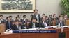 그러자 정 실장 뒷자리에서 상황을 지켜보던 강기정 정무수석은 자리에서 일어나 나 원내대표는 향해 "우기는 게 뭐에요. 우기다가 뭐냐고"라고 소리치며 항의했다. 강 수석은 손에 쥔 노란색 책자를 흔들며 격렬히 항의를 계속하자 결국 운영위원장인 더불어민주당 이인영 원내대표는 감사 중지를 선언했다.