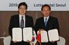 조명래 환경부 장관(왼쪽)과 리간지에 중국 생태환경부 장관이 4일 오후 서울 중구 롯데호텔에서 열린 한·중 환경장관 연례회의에서 ‘맑은하늘 이행방안’ 양해각서에 서명한 뒤 포즈를 취하고 있다.(사진=연합뉴스) |