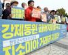 아베규탄 시민행동 회원들이 지난달 23일 청와대 분수대 앞에서 '강제동원 피해자 무시하는 지소미아 야합중단 촉구' 기자회견을 하고 있다. /사진=뉴시스 |