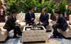 대화하는 한·일 정상 문재인 대통령이 4일 오전(현지시간) 태국 방콕 임팩트포럼에서 열린 ‘아세안+3’ 정상회의에 앞서 아베 신조(安倍晋三) 일본 총리와 환담을 나누고 있다. 청와대 제공 |