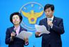 국회 정보위 간사인 김민기(오른쪽) 더불어민주당, 이은재 자유한국당 의원이 5일 서울 서대문 경찰청에서 안보지원사·경찰청 국감을 마친 후 취재진의 계엄령 문건과 관련한 질문에 답변하고 있다. 뉴시스 |